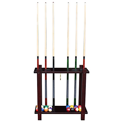 • Holds up to 10 pool cues and a complete set of billiard balls (cues and balls not included)