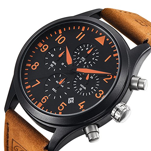 -. Title : Conbays Men’s Military Sport Watches Outdoor Chronograph Stopwatch with Brown Leather Band Gift