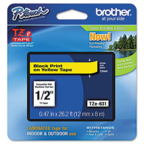 -. Title : Brother P-Touch TZe Standard Adhesive Laminated Labeling Tape, 1/2w, Black on Yellow