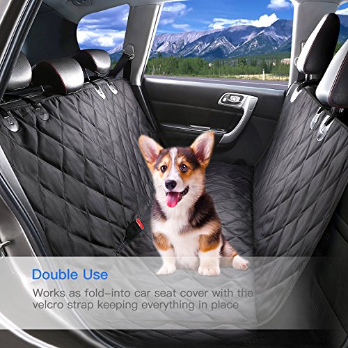 -. Feature : HAMMOCH CONVERTIBLE WITH ANCHORS: Easily convertible between hammock or standard bench coverage.Bench section of the seat cover is designed with SIDE-FLAPS extensions for extra coverage to the side of your seat cushions. / EASY TO INSTALL & CLEAN - Very easy to install with quick release clips. Seat anchor can insert to the crevice to fasten the cover, 4 sets of adjustable plastic clips that attach around the headrest in the front and the back to fix cover firmly. / EXCELLENT SIZE: Large size of 54" W x 58" L will perfectly protect your car from scratches or mud.Our product covers the entire back seat, for ultimate protection and hassle-free rides.Designed for the backseats of standard cars, trucks & SUVs. / WATERPROOF & Scratch Proof: Contructed out of high quality TPU heavy-duty waterproof polyester, easy to clean with a damp cloth or just vacuum. Keep your seat from any liquid, dirt, scratches, hair & fur. / VERSATILE SEAT PET COVER DESIGN - Acts as a fold-in CAR SEAT COVERS with the Velcro strap, suitable for not only pet, but also kids, human. 58 inch by 54 inch dog seat cover suitable use pet seat covers car. Available for most cars, trucks, automotives and SUVs.