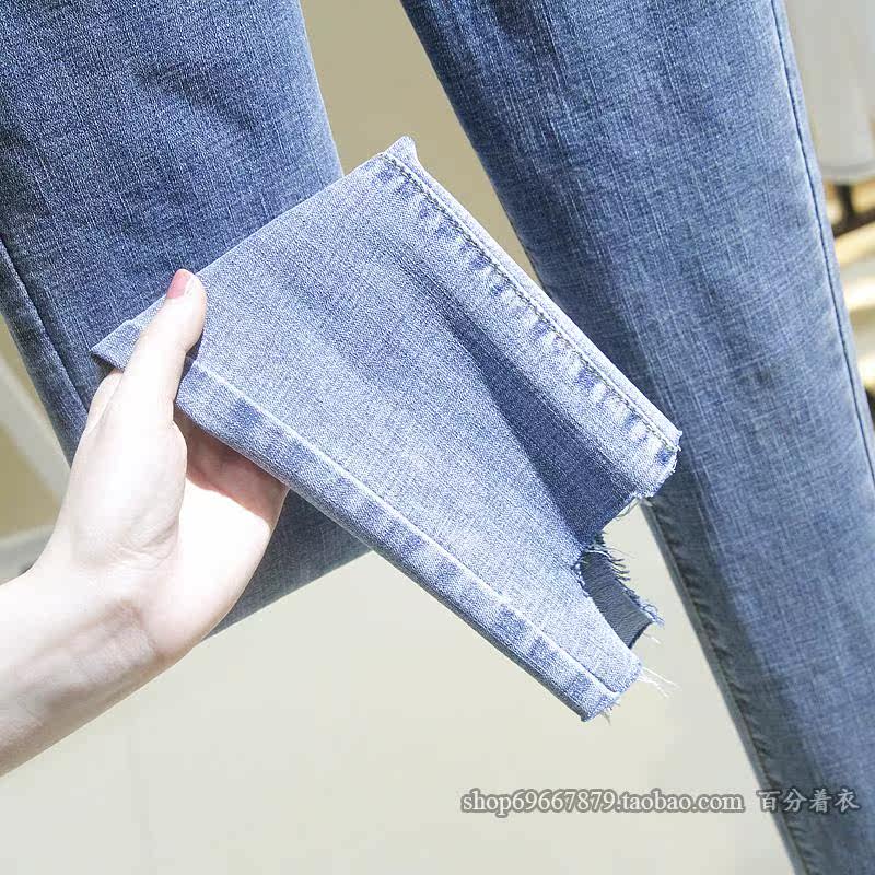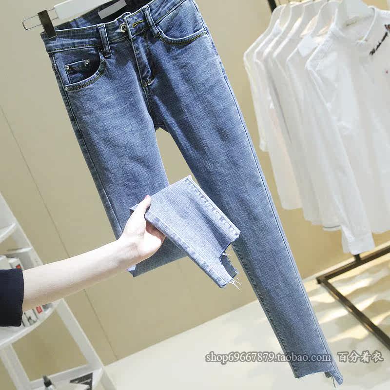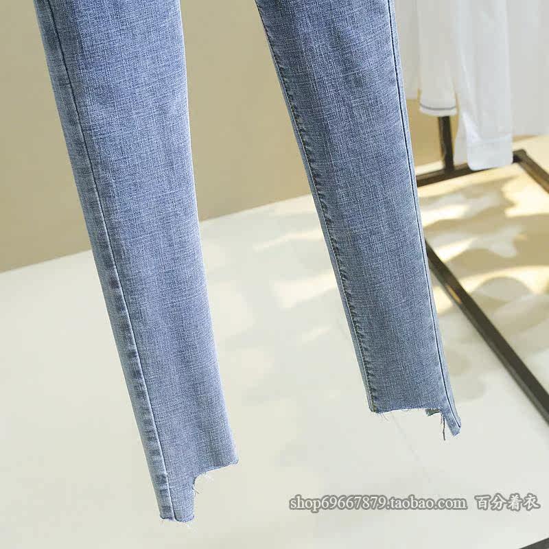 弹力面料,不规则毛边裤脚设计,
