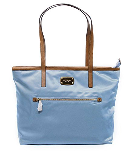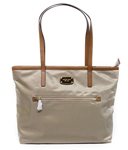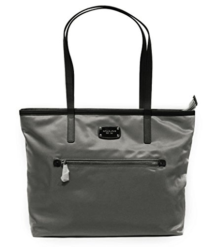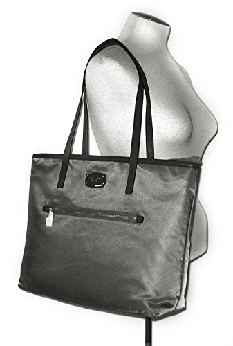 A sporty-chic tote cut from crisp nylon makes for a work day style or shopping get-away. Signature logo lining. Color: Front zip pocket. Golden hardware. Double shoulder straps, 9" drop. One interior zip & four open pockets. 16" W x 13-1/2" H x 4" DFeature