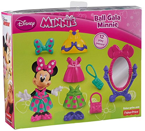 Minnie can't wait to go to the Ball Gala. Let's get her dressed & ready. Comes with: 5" Minnie Doll, Mirror, 4 dresses, 2 pairs of shoes, 2 bows and 2 purses.