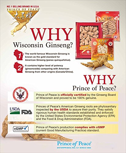 Product Description No.1 selling brand in the U.S.A. for more than 20 years, Prince of Peace® American Wisconsin Ginseng Root is the perfect gift to your friends and families! 0