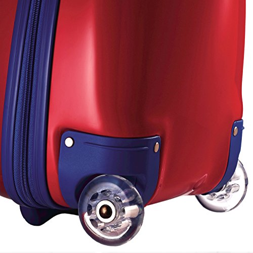 -. Binding : Apparel -. Brand : Unknown -. Department : unisex-adult -. Feature : Side mounted skate wheels, mono tube pull handle / American Tourister branding, color matching logo on the back panel / Disney branded zipper pulls, large mesh pocket on the interior / Cross straps / 18x13x9 -. Label : American Tourister - Samsonite Corporation -. Manufacturer : American Tourister - Samsonite Corporation -. Model : 65773 -. NumberOfItems : 1 -. PackageQuantity : 1 -. ProductGroup : Apparel -. ProductTypeName : LAGE -. Publisher : American Tourister - Samsonite Corporation -. Size : One Size -. Studio : American Tourister - Samsonite Corporation -. Title : American Tourister Disney 18 Inch Upright Hard Side