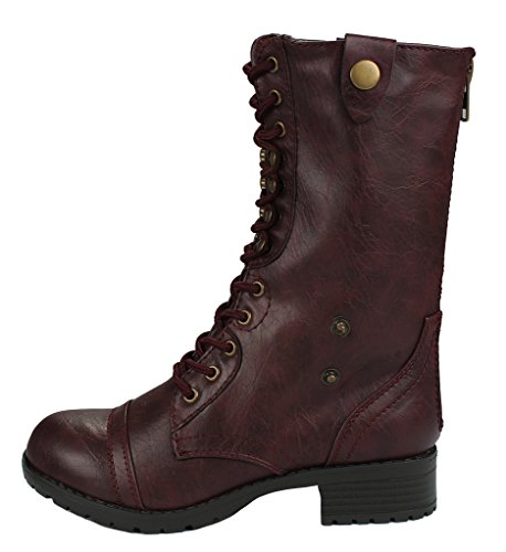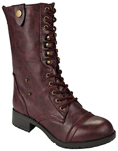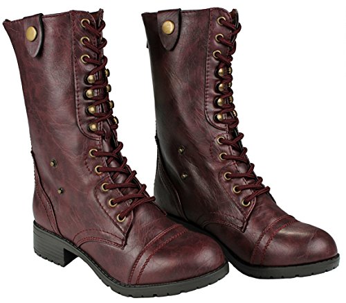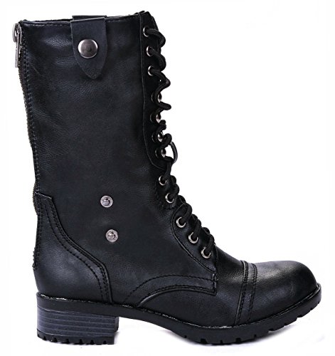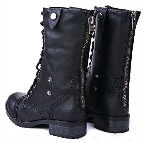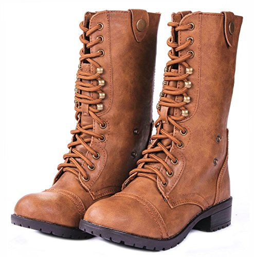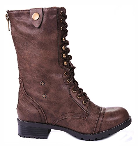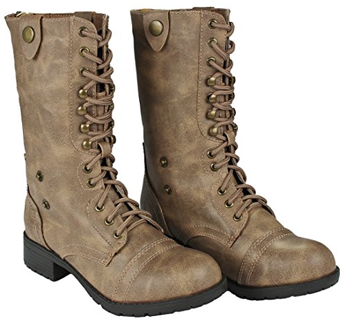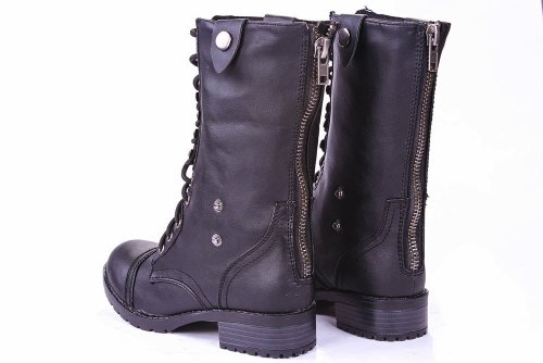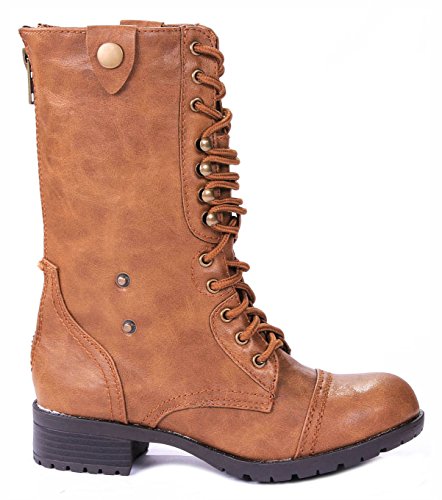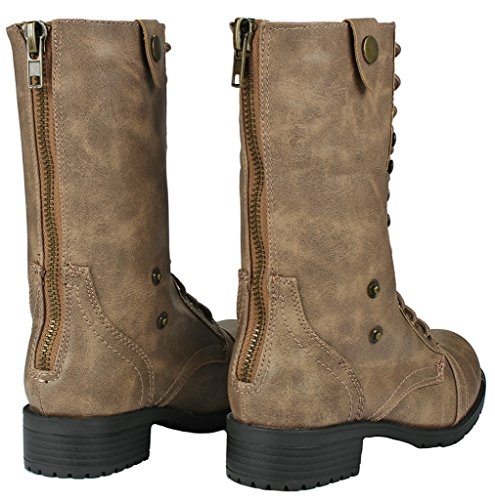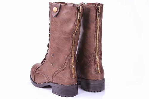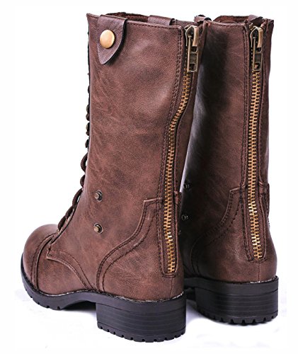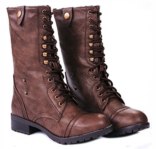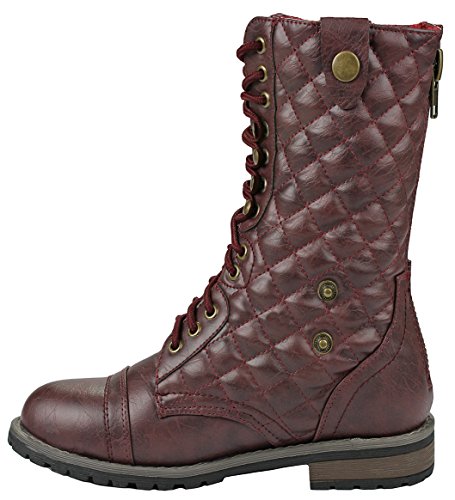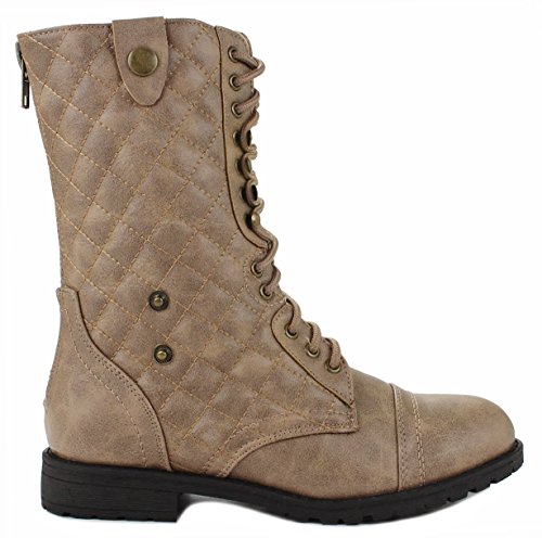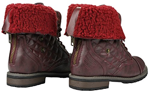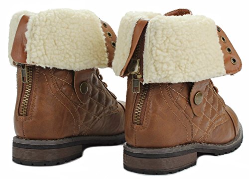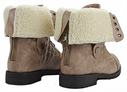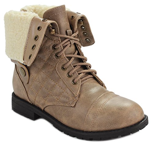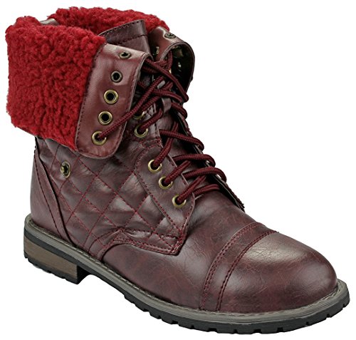 | Women Military Combat Foldable Cuff Faux Leather Plaid/Quilted Back Zipper Lace Up Boots |