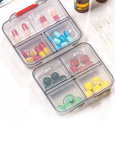 Dohia 7 compartments Pill Case Box Medicine Storage This weekly pill organizer is perfect for scheduling your week's medication. It is a essential compact EDC pill box which includes 7 seperately compartments and perfect for a trip. The inner latches of each compartment help protecting the pills from being mixed and poured out. This pill holder is made of light-weight and durable plastic which is easy and convenient for clean. You can use our pill container carry capsules,tablets, vitamins and pills you need everyday. You can even use it as a jewelry and screws container. Let our everyday carry container brings you a healthy simple happy life.