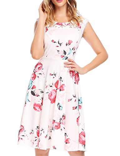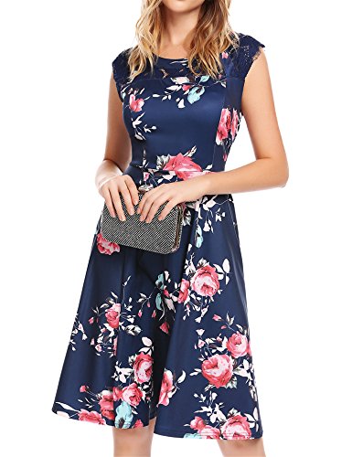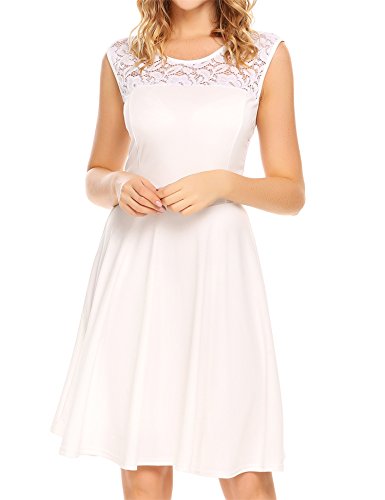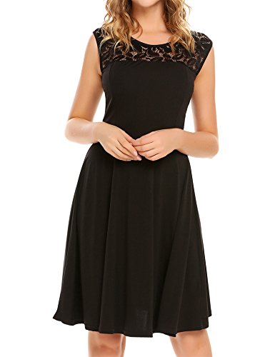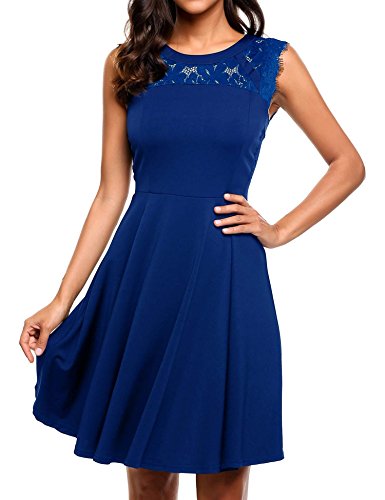 Featuring Lace patchwork round neckline, sleeveless, A-line shaped evening dress