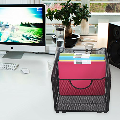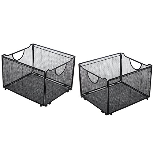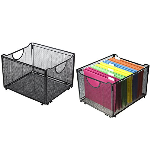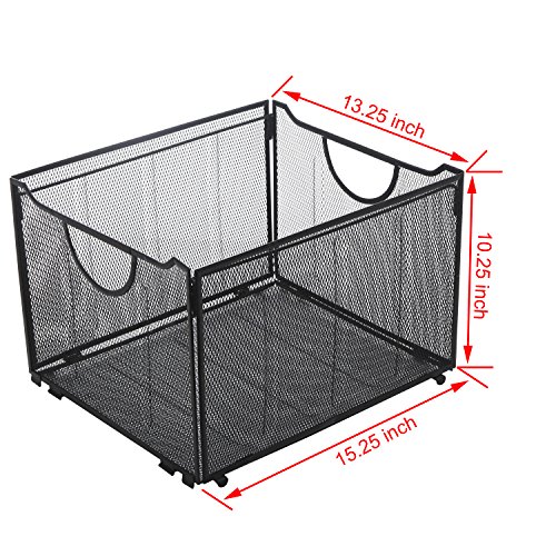 Set of 2 Modern Black Metal Mesh Foldable Office File Folder Organizer Rack Storage Crate