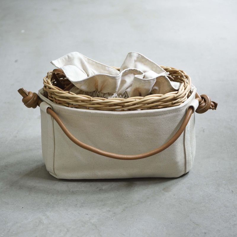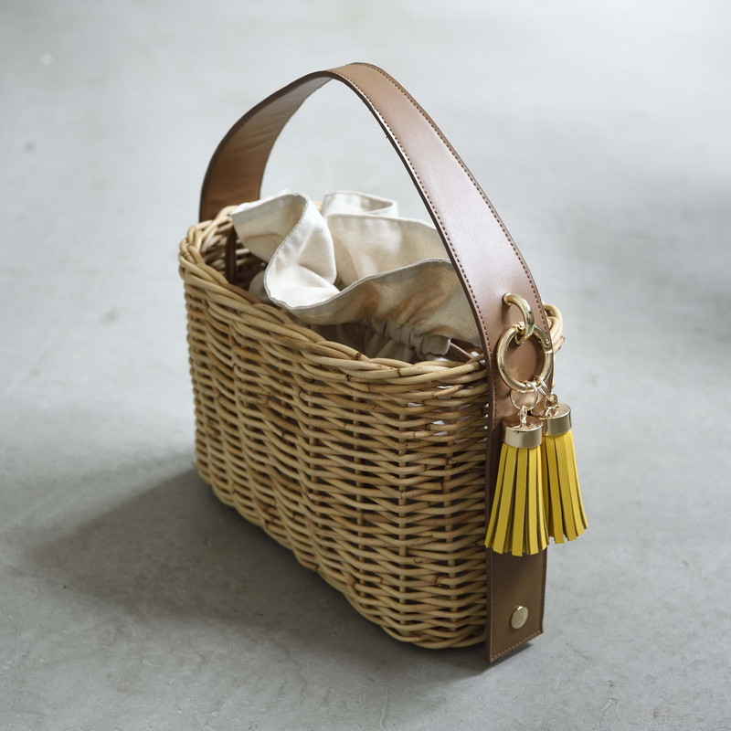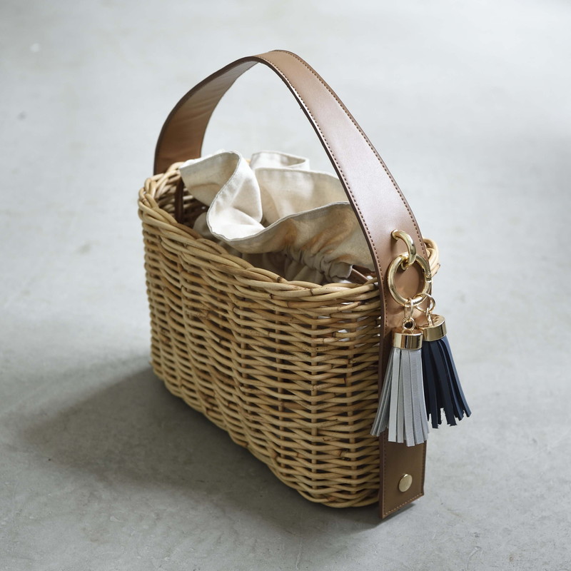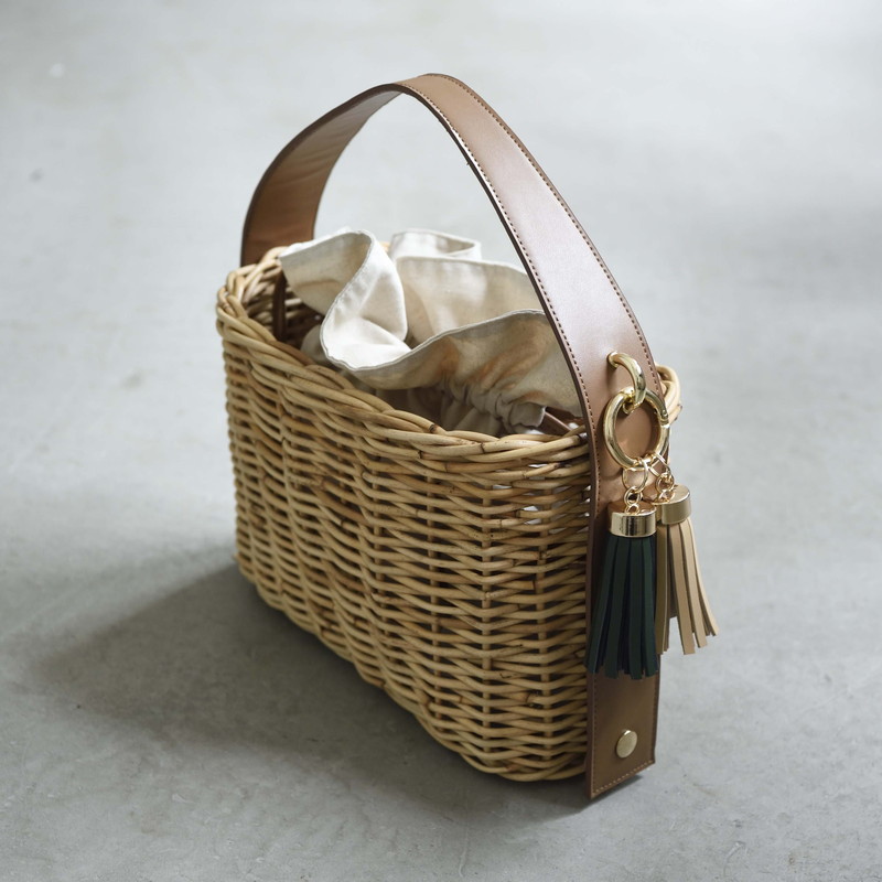 [ Rectangle-Basic ]AMONGOUT の象徴でもあるラタンバッグ、2018年 春夏は4種類の形をご用意しました。こちらの形は、初代から人気で毎シーズン問い合わせの多い、四角型のベーシックなサイズを新たなデザインで復活しました。容量もしっかり入り、形も使いやすいアラログのラタンバッグに、上質な帆布のバッグを被せて使用できるデザインとなっております。帆布バッグを外して付属の革ベルトの持ち手に付けかえれば、かごバッグだけでも使用可能なので、春夏らしい涼しげな印象でお使い頂けます。革ベルトには、タッセルチャームを取り付け可能です。帆布バッグには、太めで高級感のある羊革のロープ状の持ち手がついており、中袋を入れ替えて帆布バッグのみでもご使用頂けます。中袋には内ポケットもついており機能的で、巾着部分の紐も羊革を使用し高級感のある仕様となっております。※今シーズンから、ラタンバッグの持ち手の革ベルトが全型共通のサイズとなりました。他のデザインのお色の違う持ち手を付け替えたり、来シーズン以降の持ち手を取り付けることも可能となります。[サイズ]本体:W30cm × D14cm × H20cm底面:W26cm × D11cm[商品の特性について]AMONGOUTの商品は天然素材でつくられているため、商品によって色合いやサイズが若干異なる場合がございます。1点1点、心を込めて職人さんの手作業でお作りしております。繊細な作りとなっておりますのでご了承にの上、ご購入下さい。