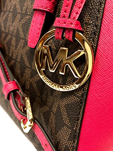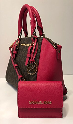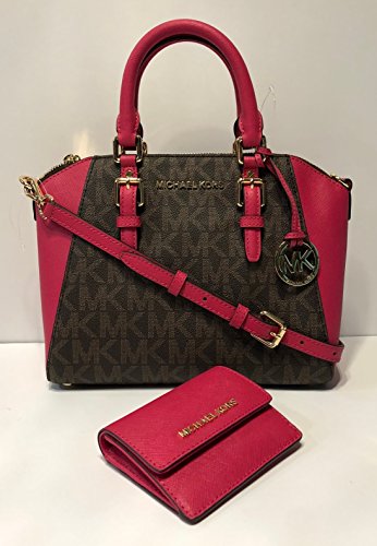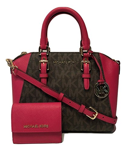 MICHAEL Michael Kors Ciara MD Crossbody bundled with ID Key Holder Wallet (Signature MK Brown/Ultra Pink)