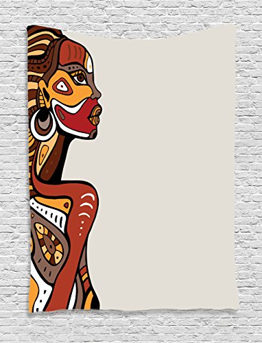African Decorations Tapestry By Ambesonne, Profile Of Sexy African Lady With Different Tattoos On Her Body And Face Stylish Print, Bedroom Living Room Dorm Decor, 40Wx60L Inches, Multi