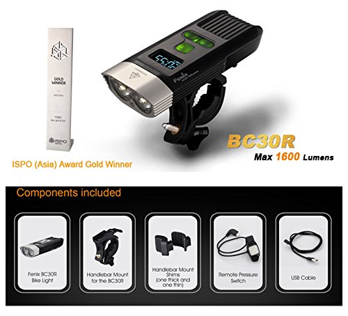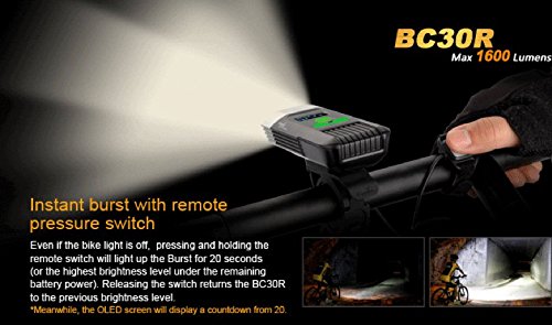 Fenix BC30R 1600 Lumens LED Bike Light, OLED display screen for the rest runtime and the battery percentage, Built in 5200mAh rechargeable battery with LegionArms USB charging cord