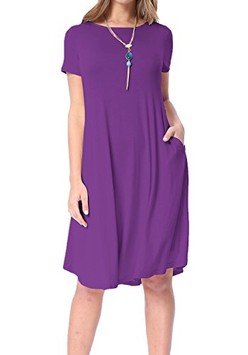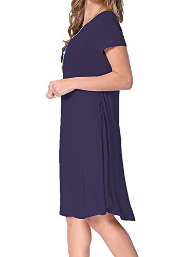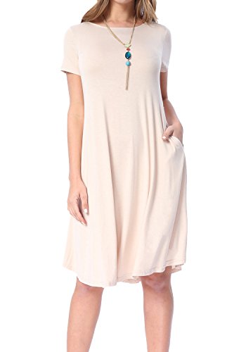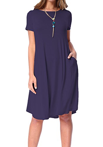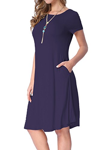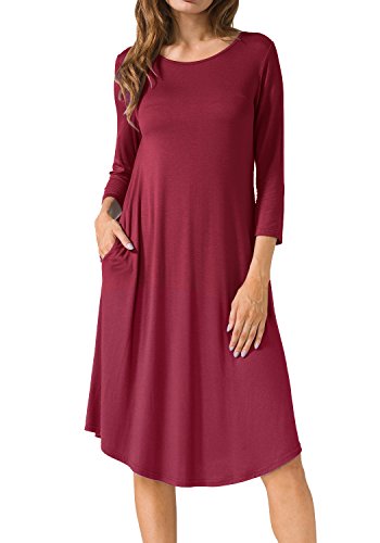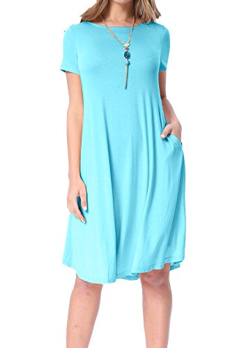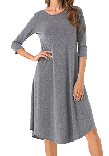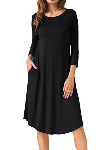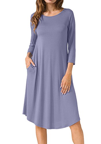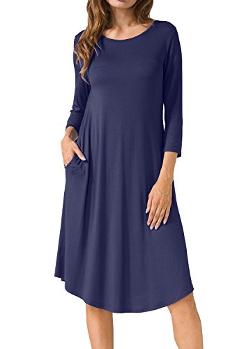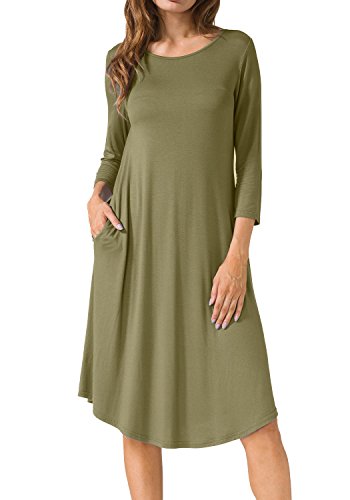 Levaca Women's Plain Scoop Neck Draped Pockets Loose Swing Casual Midi Dress,in any single wear,or as a basic shirts,Have a good show in all seasons.