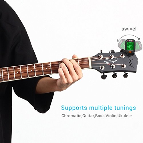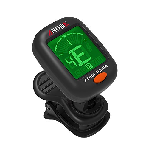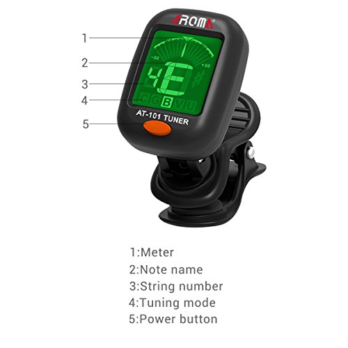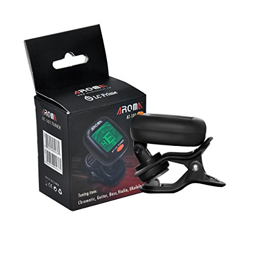 Studio : LC Prime Publisher : LC Prime Product Description LC Prime® AROMA AT-101 Tuner Tuning by Vibration for Chromatic Guitar Bass Violin Ukulele Specifications: Brand: AROMA Color: Black Tuning modes: Chromatic, Guitar, Bass, Violin, Ukulele. Pitch range: 440Hz Detection range: A0(17.5Hz)-C8(4186.00Hz) Tuning way: Clip tune by vibration) Power supply: one 2032 coin battery Dimensions: 48mm × 73mm × 28mm Weight: 23g