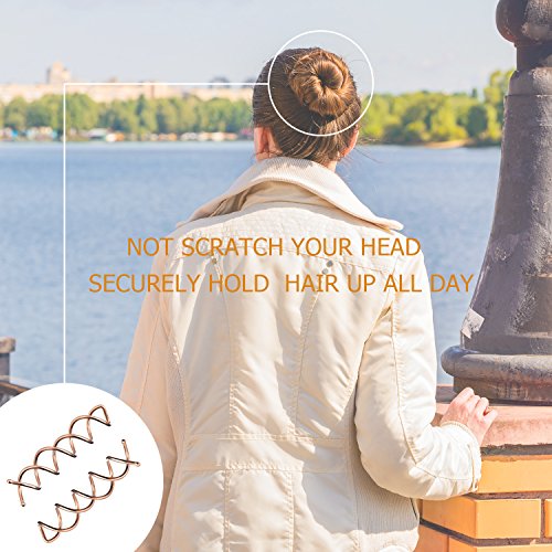 Metal plated: The package includes 20 pack simple rose gold hair pins which design simply and made of durable alloy metal; They adopt plating metal surface, not easy to fade. Wide application: the spin hair pins design with tiny round ball-tops, they will not scratch your scalp or pull your hair; They can help hold your hair well for any hairstyle all the day, fit for medium or long and thick hair; You also can share them with your friends, relations and so on. Easy to apply: You can spin the hair pin clockwise into your style, and twist the hair pin counter clockwise to release your hair style. Specification: Color: rose gold Quantity: 20 Size: approx. 6 x 1.3 x 1.3 cm Steps: 1. Bunch your grasping hair and twist into a tight circle. 2. Pick up the pin, twist clockwise into you style; For a secure hold, twist the pin deep into and catch the hair. 3. Then finish the good simple hair style; Similar steps to make other DIY hair styles. Package includes: 20 x Spiral hair clips 0