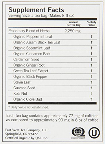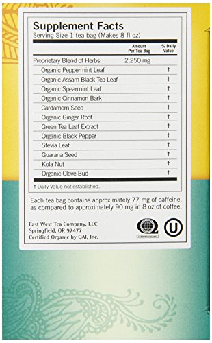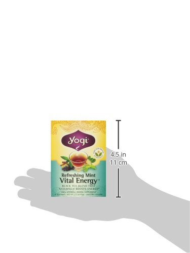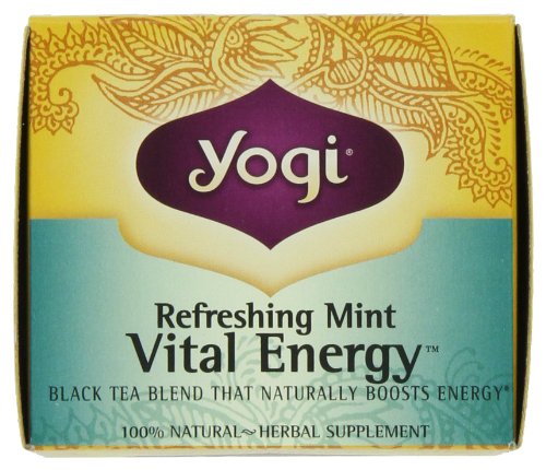 -. Binding : Grocery -. Brand : Yogi Teas -. EAN : 0076950203303 -. Feature : Organic and All Natural Ingredients with No preservatives or artificial ingredients / When you are left feeling tired and out of balance, rejuvenate with this delicious tea / Black and green tea deliver a burst of energy, as peppermint, kola nut and guarana seed support energy flow / Ginger and cinnamon complement the spirited peppermint to gently warm and detoxify / This invigorating tea helps you feel fully vitalized so you can perform at your best / 100% all natural herbal supplement made with non-GMO ingredients -. Label : Yogi -. LegalDisclaimer : Actual product packaging and materials may contain more and different information than what is shown on our website. We recommend that you do not rely solely on the information presented and that you always read labels, warnings, and directions before using or consuming a product. Please see our full disclaimer below. -. Manufacturer : Yogi -. MPN : Yogi-1617778 -. NumberOfItems : 6 -. PackageQuantity : 6 -. PartNumber : Yogi-1617778 -. ProductGroup : Grocery -. ProductTypeName : GROCERY -. PublicationDate : 2013-09-23 -. Publisher : Yogi -. ReleaseDate : 2010-09-30 -. Size : 16 BAG -. Studio : Yogi -. Title : Yogi Refreshing Mint Vital Energy Tea, 16 Tea Bags (Pack of 6) -. UPC : 076950203303