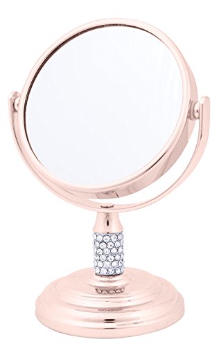 Danielle Creations 4X Magnification Dual Sided Crystal Studded Vanity Mirror, Mini, Rose Gold