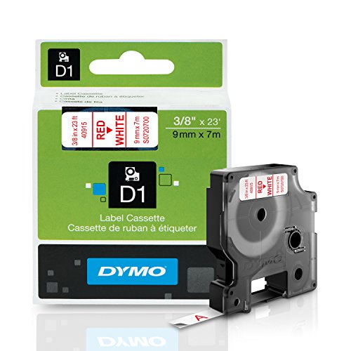 -. Title : DYMO Standard D1 Labeling Tape for LabelManager Label Makers, Red print on White tape, 3/8'' W x 23' L, 1 catridge (40915)