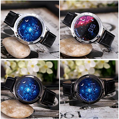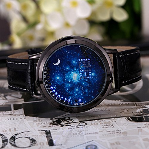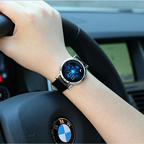 La bellezza LED손목시계 디지털 워치 가까운 미래형 손목시계 레더 벨트 터치식 스페이스 워치 유니섹스 블랙 × 블루