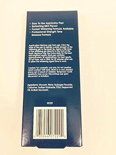-. Binding : Misc. -. Brand : Idol White -. EAN : 0035046072292 -. Feature : Uses a Unique Teeth Whitening Gel / Delivers Professional Teeth Whitening Results at Home / Cleans Teeth While Whitening / Safe and Easy To Use / Noticeably Whiter Teeth in as Little as Six Days -. Label : Idol White -. Manufacturer : Idol White -. Model : 2 x 2.5ml Pens -. MPN : N7229 -. NumberOfItems : 20 -. PackageQuantity : 1 -. PartNumber : N7229 -. ProductGroup : Beauty -. ProductTypeName : BEAUTY -. Publisher : Idol White -. Studio : Idol White -. Title : Idol White Teeth Whitening Pen 2 Pens - 30 Day System -. UPC : 035046072292