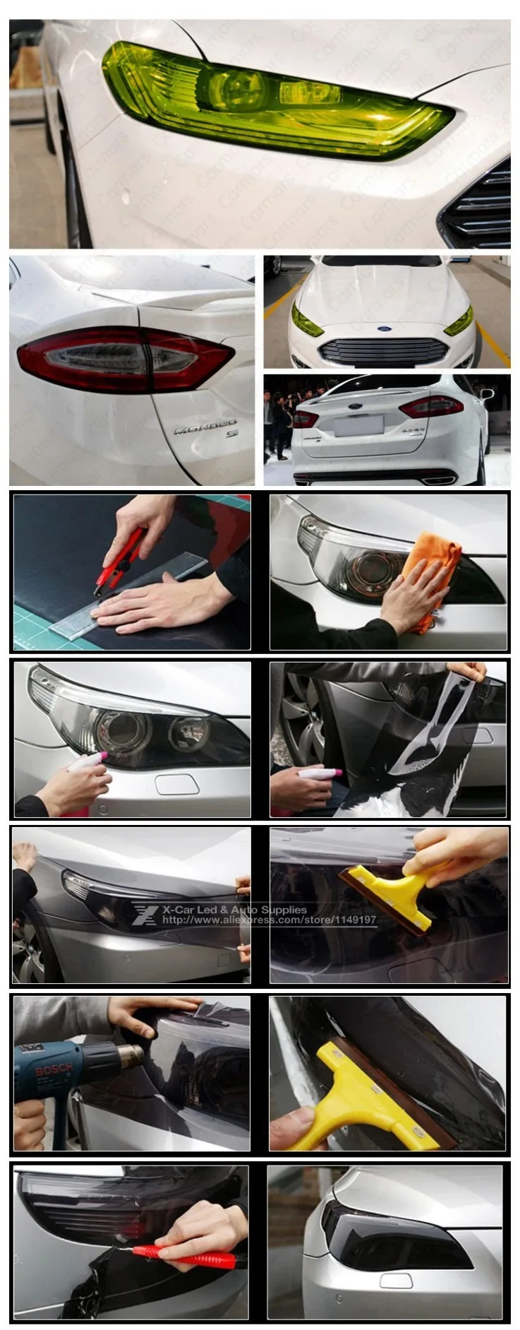 Suitable for any headlights, fog lights, side marker lights or seven top part of the windshield, etc.