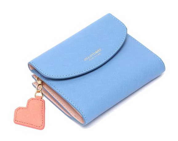 심플한 디자인에 탈착 가능한 미니하트 참장식과 내부 배색으로 포인트를 준 고급스럽고 여성스러운 2단 반지갑입니다.