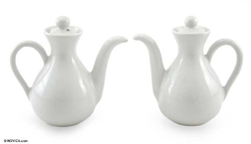 -. Title : NOVICA Ceramic oil and vinegar set, Pair, White Minimalism-PARENT(161953-P)