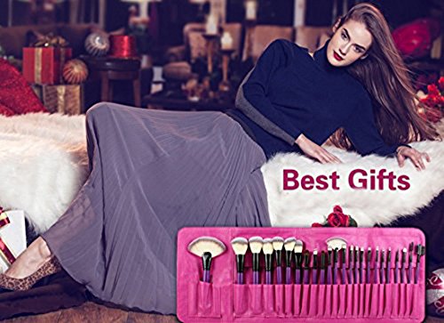 - Feature : 24PCS Purple Makeup Brush Set with Pink Roll Case Bag / Fashion Design, Ultra Soft and Smooth / The Bristles are very Soft and good quality, Comfort your Skin / Roll Up Carrying Case Stores and Protects Brushes with Ease / Perfect gift for Christmas,Holidays, Mother's Day, Dinner Parties, Birthdays and more