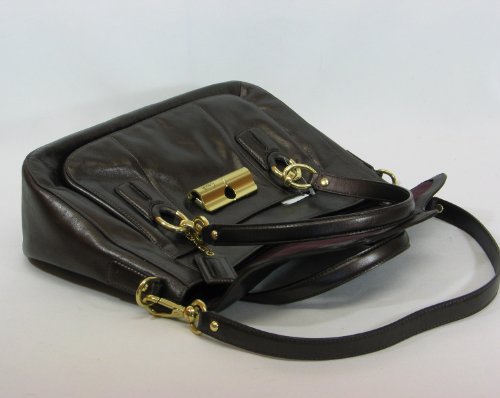 -. Feature : Made by Coach and retails for $428.00 / Metallic leather in bronze color and accented with brass/gold hardware / Flap closure with Kristin hardware / Double leather straps with removable longer leather strap with dogleash ends / Approximately 14 inches wide, 10 inches tall and 4 inches deep