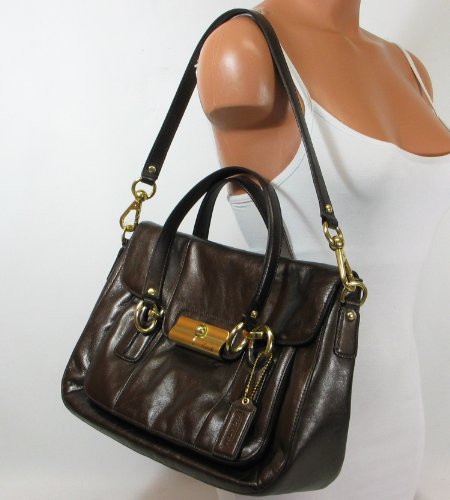 -. Title : Coach Kristin Metallic Leather Flap Satchel Convertible Bag 18818 Bronze