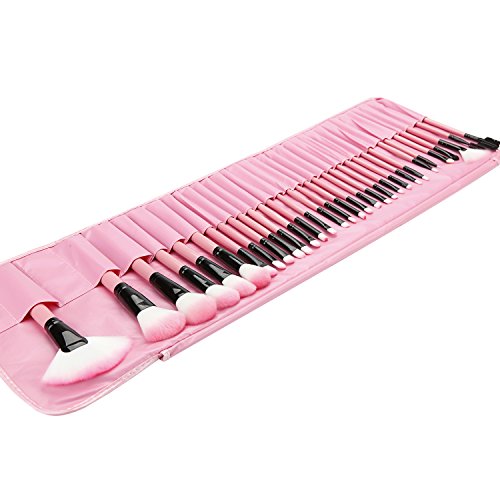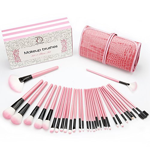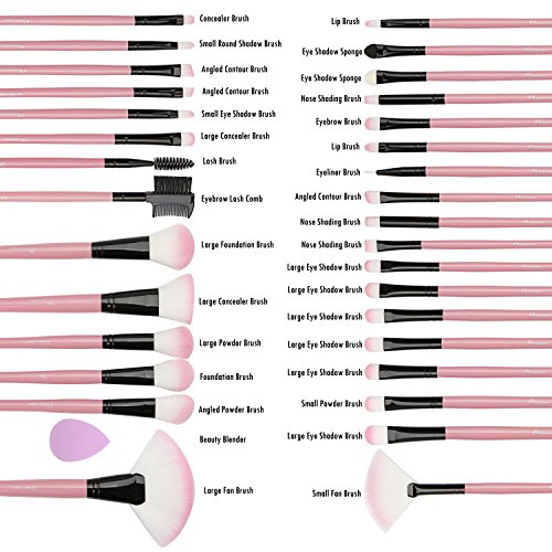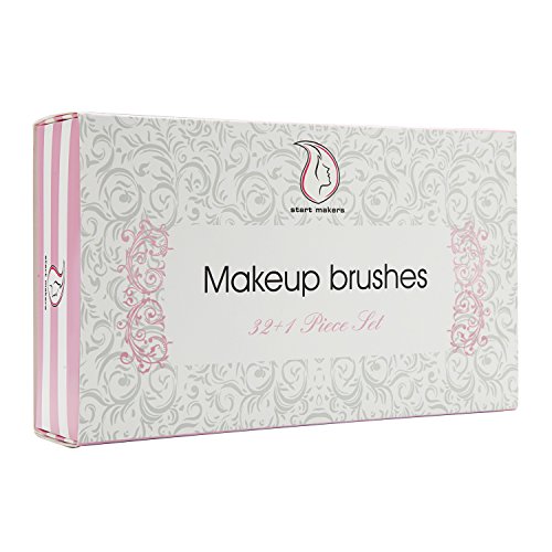 Makeup Brushes ,Start Makers 32+1 Piece Professional Makeup Brush Set with Purple Beauty Blender and Gift Box (Pink)