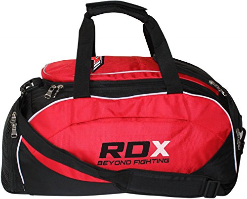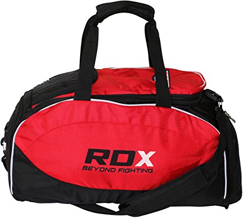 -. Brand : RDX -. Color : Red -. EAN : 5054421993521 -. Feature : Can be used as backpack or duffle bag,Backpack straps can be hidden behind a panel / Can be carried in 4 ways,U-shaped zippered main compartment / The shoe compartment is sectioned off and zips from the outside / Two side zipped pockets, front Velcro pocket and top zipped pocket / Handle on the sides with comfort grip and two detachable shoulder straps, Dimensions: Height 23'' x Wide 11'' -. IsAutographed : 0 -. IsMemorabilia : 0 -. Label : RDX -. Manufacturer : RDX -. MPN : 5054421993521 -. PartNumber : 5054421993521 -. ProductGroup : Sports -. ProductTypeName : OUTDOOR_RECREATION_PRODUCT -. Publisher : RDX -. Studio : RDX -. Title : RDX Gym Holdall Gear Bag Backpack Duffle Kit Sports Gymsacks Rucksacks