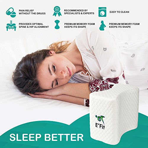 - ✅ REALLY HELPS TO RELIEVE PAIN. The E'Fit prime knee pillow provides relief for sciatica, back pain, leg pain, lumbar, hip, and neck pain. The contour pillow safely and gently helps relieve pain and discomfort in the legs, hips and spine.