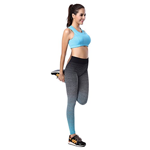 Das Leben 스포츠 팬츠 요가 팬츠 스포츠 타이츠 레이디스 우수한 신축성 긴 타입 4색 (L,블루)