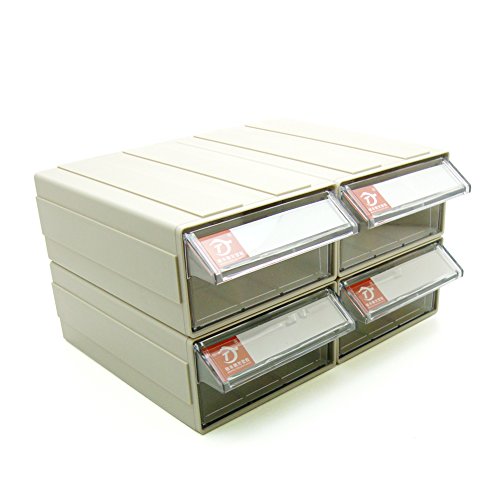 Pack of 4 Plastic Desktop Stacking Interlocking Drawer Storage Cabinet Parts Box, 7.3×4.3×2.4inch
