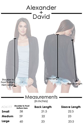 -. Binding : Apparel -. Brand : Alexander + David -. Department : womens -. Feature : DETAILS: Polyester/Rayon lightweight two tone blend knit fabric. Open Face drape front knit mid length cardigan. / FABRIC CONTENT: 57% Polyester. 43% Rayon. Made in USA. / SIZE & FIT: Measurements taken from a size Small. Shoulder to Front Bottom Hem 29". Back Length 21.5". Sleeve Length 22.5". Model is wearing a size small. Model's Measurements --- Height 5'7". Bust 31". Waist 24". Hips 34". / CARE INSTRUCTION: Hand wash with cold water. Do not bleach. Hang or line dry / SIZE DISCLAIMER: Check our size chart in the photo gallery, please buy with confidence. --- Color Disclaimer: Due to monitor settings and monitor definition of pixels, we cannot guarantee that the color you see on your screen is as an exact color of the product. We strive to make our colors as accurate as possible, but colors are approximations of actual colors. -. ProductGroup : Apparel -. ProductTypeName : SWEATER -. Title : A+D Womens Sweater Knit Cardigan W/ Open Front