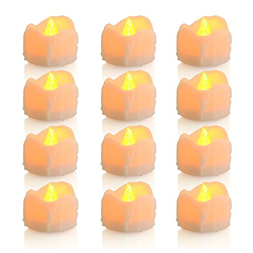 Sunlighte Flickering Tea Light,Flameless LED candles with Battery-Powered(Included) for Wedding, Home and Party Decorations, Set of 12, Yellow, 1.4"x1.7"