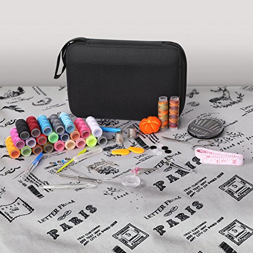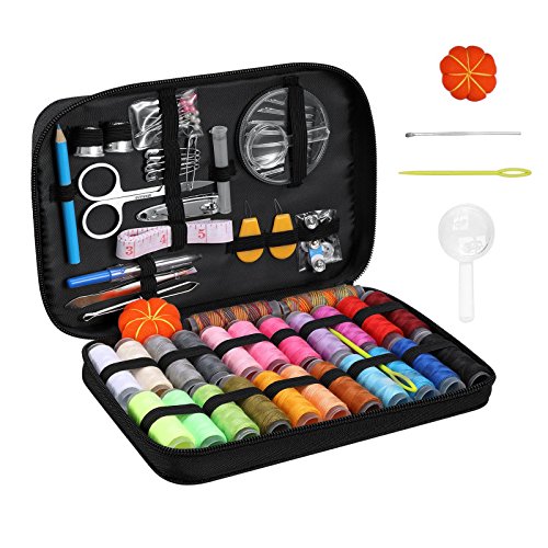 Sewing Kit, Diy Hand Craft Sewing and Repair Kit Supplies Over 99 Essential Tools in Zip Box Include Thimble, Thread, Needles and Complete Hand Sewing Accessories For Home Travel Repair Black