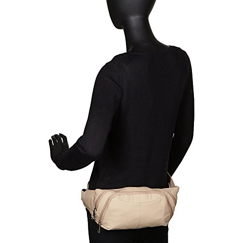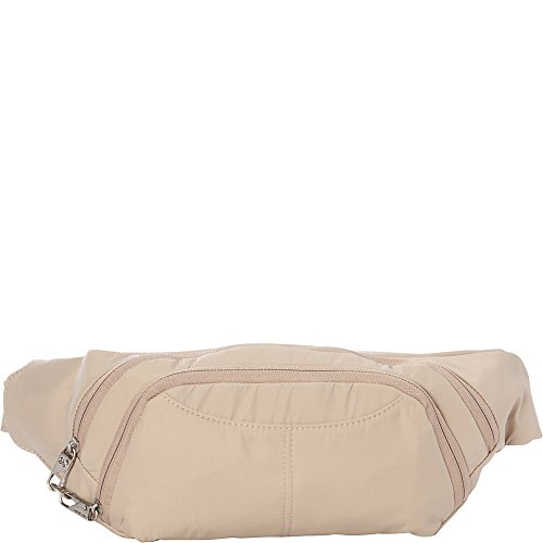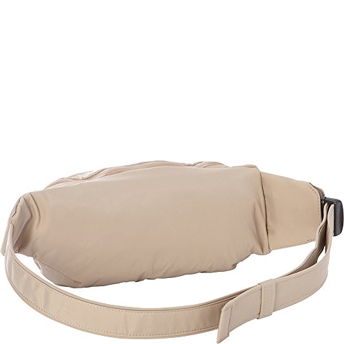 -. Feature : Two zippered compartments with locking hardware / Interior organizer with RFID blocking card and passport slots / Front slip pocket / Interior zippered pocket / Slash-Resistant body panel
