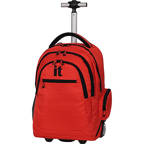 Studio : IT Luggage Publisher : IT Luggage Binding : Apparel Product Description This ultimate trolley backpack offers the best of both worlds. This bag features adjustable padded shoulder straps for comfortable over-the-shoulder wear. Straps can be easily concealed inside a back pocket. The 2 wheels and retractable push-button handle allow this bag to be effortlessly rolled on the ground - less weight on your back and shoulders! U-shaped front panel pockets include a 15.6" laptop sleeve and tablet section for superior storage and organization. 0