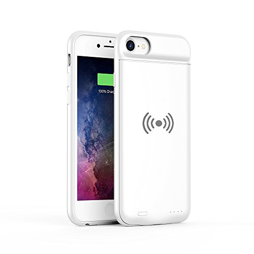 -. Feature : WIRELESS CHARGING ¨CA new way to power your phone without the use of cables. Charge by simply placing your battery case on the wireless charging base. Compatible with Apple iPhone 7 (2016) / iPhone 6s (2015) / iPhone 6 (2014) / SPECIALLY DESIGNED FOR THE IPHONE 7/6/6S ¨CSoft flexible TPU protective bumper with hard PC shell, provide full protection for your device; Easy installation and removal; Precise cuts and accurate design allows easy access to all ports and buttons; Only weighs 73.5g, convenient enough to fit easily in your hand or in your pocket. / EXTRA BATTERY LIFE ¨CBuilt-in powerful 3000mAh rechargeable battery can effectively provide 100%+ extra battery life to your iPhone, which is equivalent to add 17+ hours talk time or 10+ hours movie time. Enjoy more talk time, music, movies, and internet surfing. The 4 LED lights at the back of the case tell you exactly how much juice it's got left when you press the "power" button. It also indicates the charging status. / INNOVATIVE CHARGING TECHNOGOLGIES ¨CWhen phone installed, external charger will charge your phone first, when the power of your phone reaches 85%, the external charger will charge your phone and the battery case simultaneously. And you can sync up your iPhone with a computer or laptop without having to remove the entire case. / IMPORTANT -Fully charge the battery case with Apple original USB power adapter & original lightning cable before use; NOT compatible with your iPhone 7 lightning 8pin headphones, ONLY for Apple Airpod Bluetooth headphones.