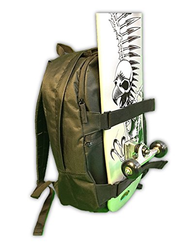 • DESIGN Dual zippered front pockets, padded shoulder straps and dual velcro straps to hold skateboard or any suitable equipment.