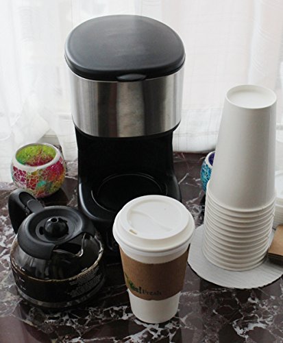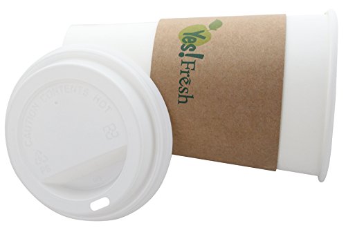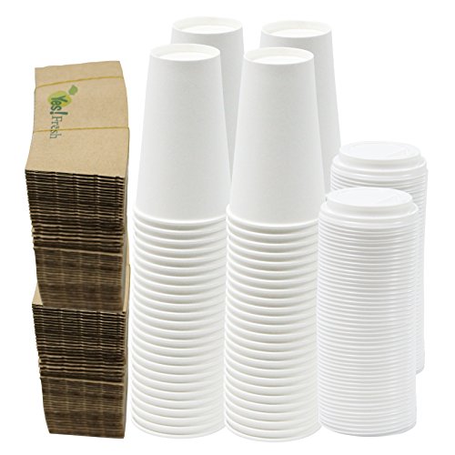 -. Title : 100 Disposable Paper Hot Coffee Cups with 100 Cappuccino Lids and 100 Protective Corrugated Cup Sleeves, White