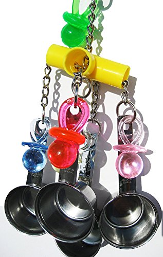 - Has 4 stainless steel cups and colorful acrylic pacifiers