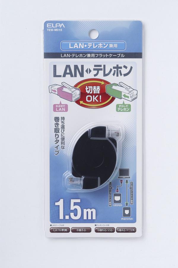 | 仕様 | LANケーブル時:8極8芯 CAT6準拠 テレホンコード時:6極6芯/4芯(NTT仕様)/2芯兼用 巻き取りタイプ 両端モジュラープラグ付 |