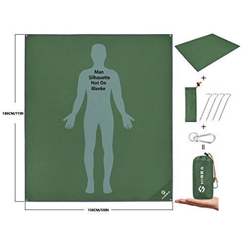 1. EXTRA OVERSIZED – HISEA camping picnic blanket with unfolded size 71 x 59 inch ( 180 x 150 cm) and folded size 7 x 3.5 x 2.4 inch ( 18 x 9 x 6 cm), easily suit for 3-4 person to do outdoor activities; SMALL POUCH, LARGE BLANKET;