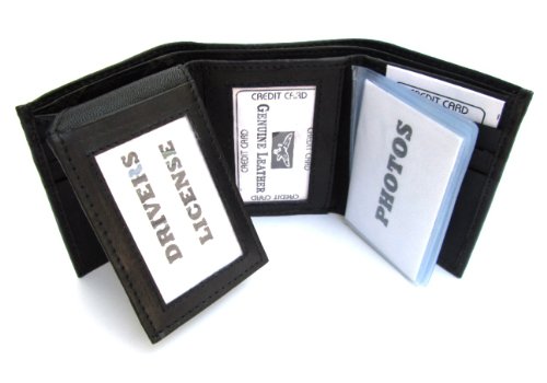 Dangerous Threads Mens Black Leather Wallet Lambskin "Flip" Trifold 732