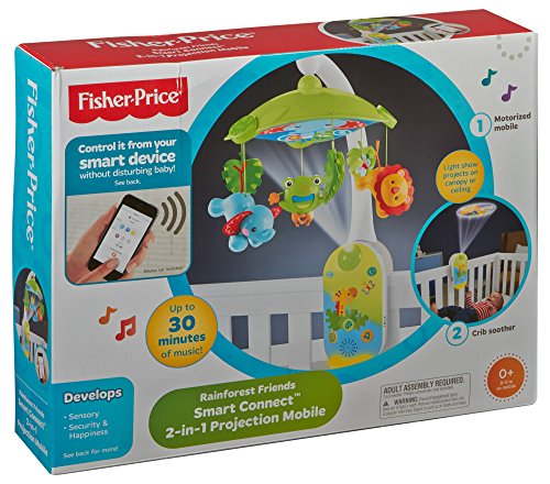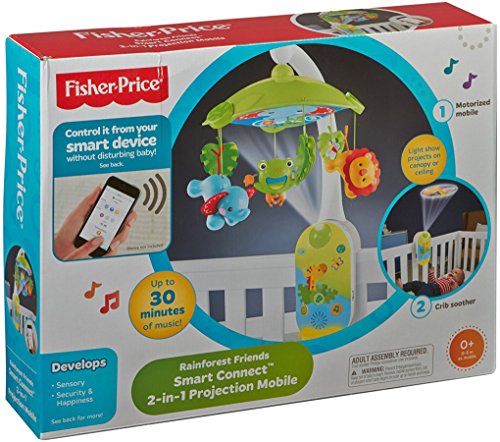 Experience innovation at its best with this motorized, sensory-stimulating mobile. Do-not-disturb features include lullabies, white noise, nature sounds, a soothing, full-color light show and quick check light. All controlled from your smart device, so you don’t have to disturb baby. Simply download the Smart Connect app to activate the spinning mobile or to turn on the calming music and soothing lights without disturbing baby. The Smart Connect 2-in-1 Projection Mobile grows with baby from a motorized crib mobile (0-5 months) with canopy light projection, to a crib soother for older babies with ceiling light show projection. For issues, please call Fisher-Price Customer Service: 800-432-5437Feature