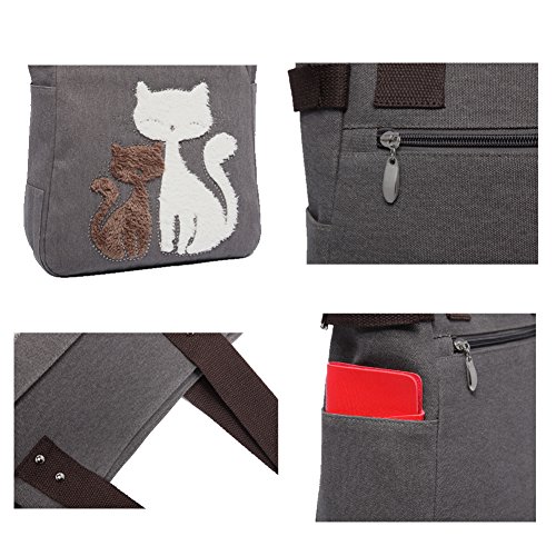 Binding : Apparel Product Description Product Description Special Feature - 100% Brand New, Multi pockets inside. - Made of high density canvas with excellent stitching technic which makes the shoulder bag strong and durable. - It's a very cute bag for working, short traveling, college, school and everyday using. - Please feel free to contact us if you have any problems regarding the backpack. - Please allow little color difference due to different camera or light environment. Basic Information Main Material Composition: High density canvas Lining Material: Cotton Size(L*W*H): Size: 12.6 x 14.96 x 3.74(Inch) Weight: 0.88 pounds 400g Package: Hangtag Polybag Delivery time: In 2 working days after payment received Package Include: - 1 * cat shoulder bag/ Plastic Bags Purchasing Notes: 1. Hang to dry and store in ventilated place instead of sun exposure. 2. Hand wash only 3. Do not iron 4. Do not bleach 0